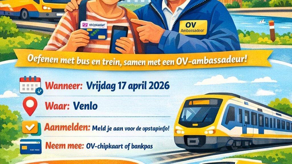 Plannen voor een dagje uit, maar is reizen met het openbaar vervoer niet (meer) vanzelfsprekend? Onzekerheid na lange tijd niet met bus of trein te hebben gereisd, kan een drempel vormen om op pad te gaan. De proefreis biedt een laagdrempelige en prettige manier om het reizen met het openbaar vervoer weer te oefenen, samen met een ervaren OV-ambassadeur. De volgende OV-proefreis wordt gehouden op: